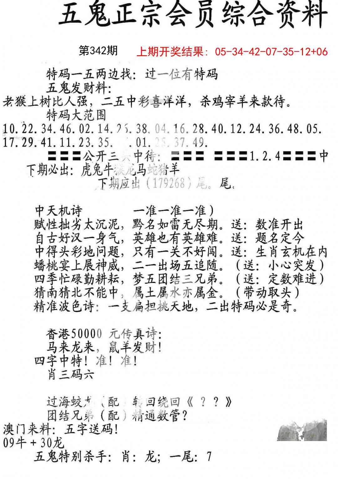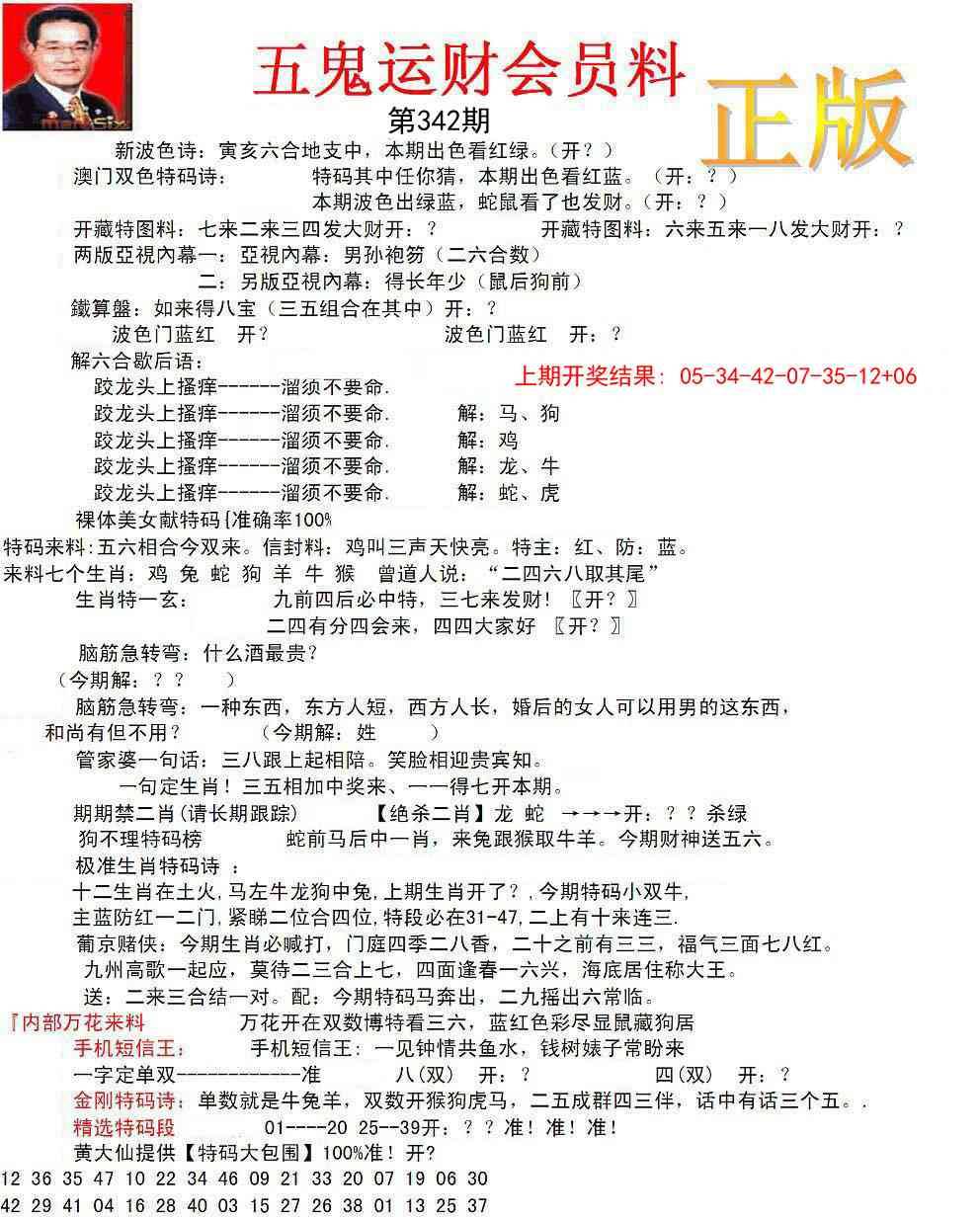正版五鬼运财会员料