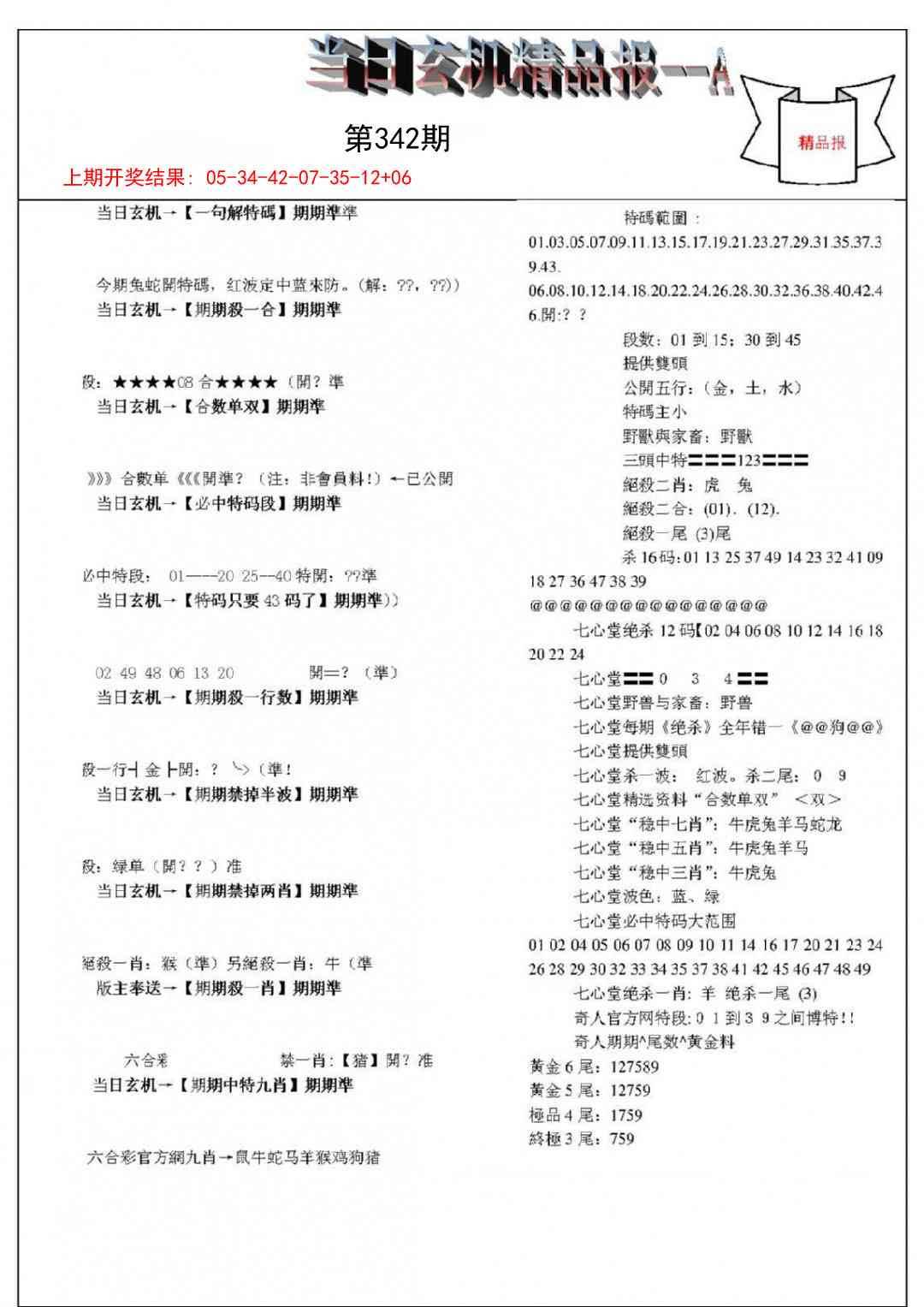 当日玄机精品报A