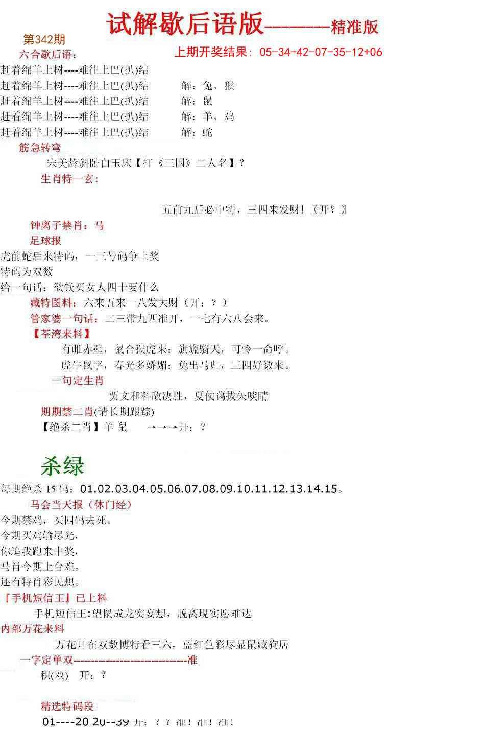 正宗六合玄机料